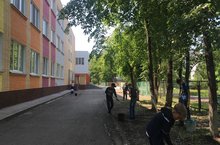 На территории школы идет активная работа. Все ребята совместно с учителями благоустраивают и убирают территорию.