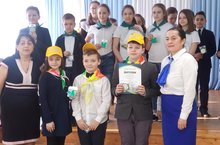 Церемония награждения отряда "Лидер" 5б класса за 3 место на двух турах интеллектуально-познавательной игры "#Перезагрузка" в рамках городской программы "Территория осмысления".