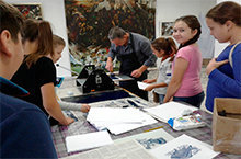 Учащиеся 6А класса побывали в картиннной галереи на выставке Владимира Акимова,заслуж.художника РФ, народного художника РТ. Также ребята попробывали изготовить свои необычайные рисунки с помощью работников музея. Было необычайно интересно.