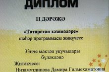 По результатам года городской программы" Сокровище Татарстана" команда нашей школы " Очкын" учащиеся 6а и 6б классов заняла 2 место руководитель Низамутдинова Д.Г.