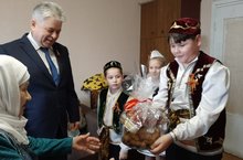 Глава Автозаводского района Винер Харисов поздравляет ветеранов по месту жительства. К поздравлению труженицы тыла Шамсутдиновой Разии Анваровны присоединились и ученики нашей школы . Учащиеся в национальных костюмах читали стихи и пели песни на родном языке ветерана.