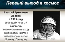 18 марта 1965 года с борта космического корабля «Восход-2» советским космонавтом Алексеем Леоновым был совершён первый выход в открытый космос.