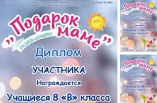 Поздравляем 8В, 5А, 6В, 7Б классы с активным участием в городском конкурсе "Подарок маме".