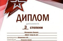 Поздравляем ученицу 5А класса Назарову Азалию, которая стала дипломантом в городском юнармейском конкурсе гражданской и патриотической песни "Красная гвоздика", посвященного Дню Героев Отечества. Желаем дальнейших успехов в искусстве и творческих номеров!!!