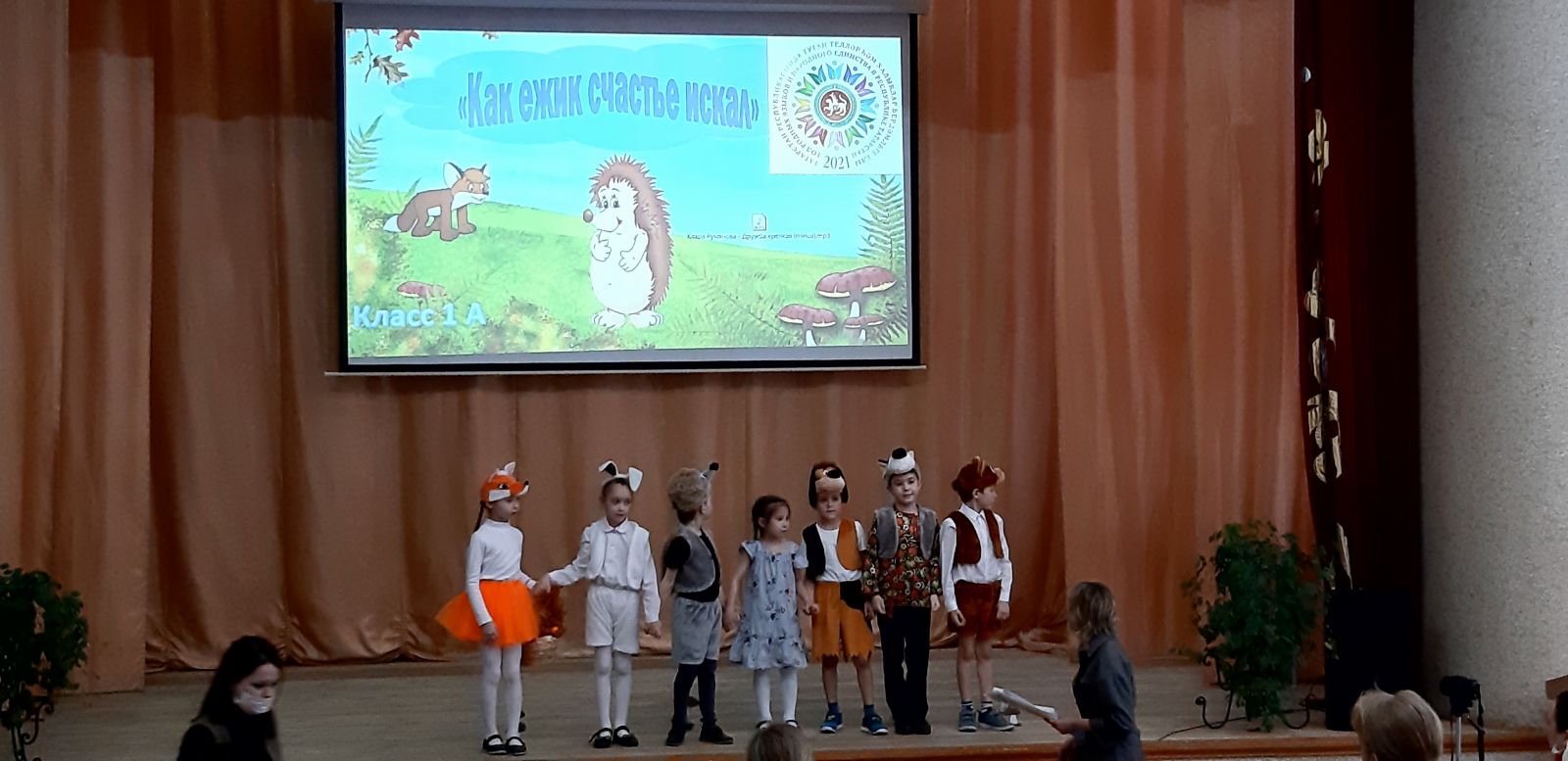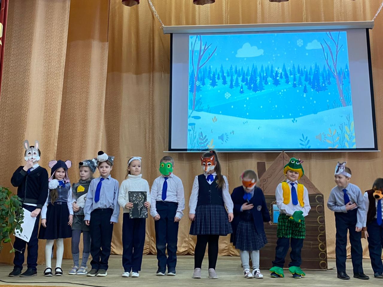 Учащимися 1 классов были инсценированы такие сказки, как «Репка», «Муха-Цокотуха», «Как ежик счастье искал», «Царевна лягушка». С помощью масок и костюмов ребята превратились в настоящих актёров. Они смогли для зрителей продемонстрировать не только знание сказки, но и связанную речь, свои артистические способности.