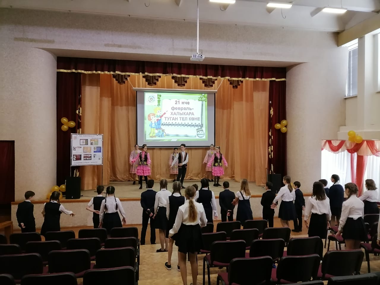 Мәктәпнең актлар залында " 21 нче февраль -Халыкара туган көн" кысаларында музыкаль кичә үтте.