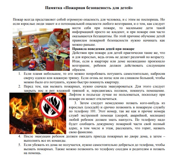 Памятка "Пожарная безопасность для детей" 27.05.2020