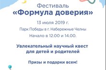 13 июля 2019 года в парке культуры и отдыха «Победа» состоится научный фестиваль «Формула доверия» для детей и взрослого населения. Начало в 12.00 и 14.00