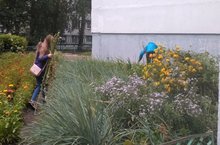 Хотя за окном и лето, ребята продолжают облагороживать школьную территорию.