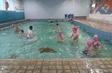 Хотя за окном и стоит прохладная погода, ребята в пришкольном лагере "Радуга" школы №24, купаются в своё удовольствие. Учащиеся лагеря посещают бассейн "Олимпийский".