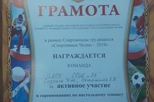 Поздравляем команду МАОУ "СОШ №34" . Наша команда учавствовала в соревнованиях по настольному тенису в рамках Спартакиады трудящихся "Спортивные Челны-2019"