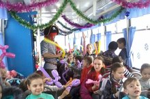 29 декабря, в предверии Нового года, учащиеся 3а,3б,3г т 4а классов поехили в новогоднее путешествие. На новогоднем трамвае ребята совершили поездку по всему городу. Их развлекали весёлые клоуны Ириска и Пират. Во время путешествия ребятам был показан мастер класс "Как делать собачку и меч из шариков". Ребята с удовольствием пели песни, отгадывали загадки и даже устроили весёлую дискотеку в новогоднем трамвайчике! Всех поздравляем с наступающим Новым годом!
