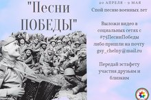 С 20 апреля Городской совет учащихся запустил онлайн-акцию «Песни Победы». Участникам необходимо записать видео исполнения песни военных лет вместе со своей семьей. Затем выложить ролик в Инстаграм или в группу Вконтакте с хештегом #75ПесниПобеды, либо прислать на почту Городского совета учащихся – gsy_chelny@mail.ru. Лучшие видео будут опубликованы в официальных аккаунтах ГСУ. Принять участие в онлайн-акции может любой желающий.