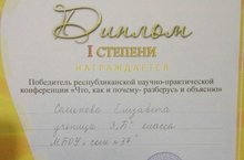 Республиканской научно-практической конференции «Что, как и почему – разберусь и объясню». Кл. рук. Пахомова Е.В. -