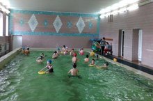 Дети из пришкольного лагеря "Алые паруса" посещают бассейн "Дельфин". Процедуры водные самые задорные! Под чутким вниманием тренера-инструктора дети не только развлекаются, но и оздоравливаются, а также учатся держаться на воде и плавать.