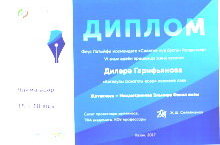 Флүс Латыйфи исемендәге "Сәләткә нур булган йолдызлар" VI ачык әдәби ярышында җиңү яулаган Диләрә Гарифьянованы (10 сыйныф) чын күңелдән котлыйбыз һәм уңышлар телибез. Татар теле һәм әдәбияты укытучысы Нәҗметдинова Э.Ф. га рәхмәт белдерәбез.
