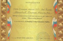 Поздравляем учащегося 9в класса Минибаева Рамиля, ставшего призером межрегиональной викторины по английскому языку "Discovering Britain" в номинации "Listening Comprehension Skills", организованной ФГБОУ ВПО "НИСПТР" (учитель: Соколова М.В.). Желаем успехов и новых достижений в изучении английского языка!