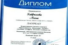Поздравляем Гаврилову Анну, ученицу 11а класса, с победой Всероссийском заочном конкурсе "Креативность. Интеллект. Талант" в номинации "Медицинский аспекты биологии". Благодарим учителя биологии Фатхуллину Гульнур Нурисламовну за плодотворный труд. Желаем дальнейших творческих успехов!