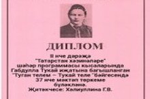 КОТЛЫЙБЫЗ!Бөек шагыйребез Габдулла Тукайның туган көне уңаеннан шәһәребездә дистанцион “Туган телем – Тукай теле” бәйгесе үтте.3 нче “в” сыйныфы укучылары тарафыннан “Шаян песи” шигырен укыган Яхина Зәмирә, Талипова Самира, Вахитова Алинә, Фаттахова Ралина, Гафиятуллин Раил II урын дипломга лаек булды.Җитәкчеләре- Хәлиуллина Г.В. -