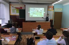 Для учащихся 6а,б,в,г классов проведена неделя краеведения. На фото мероприятие проводит учитель истории Волков Д.А. "Мой край родной, Республика моя!"
