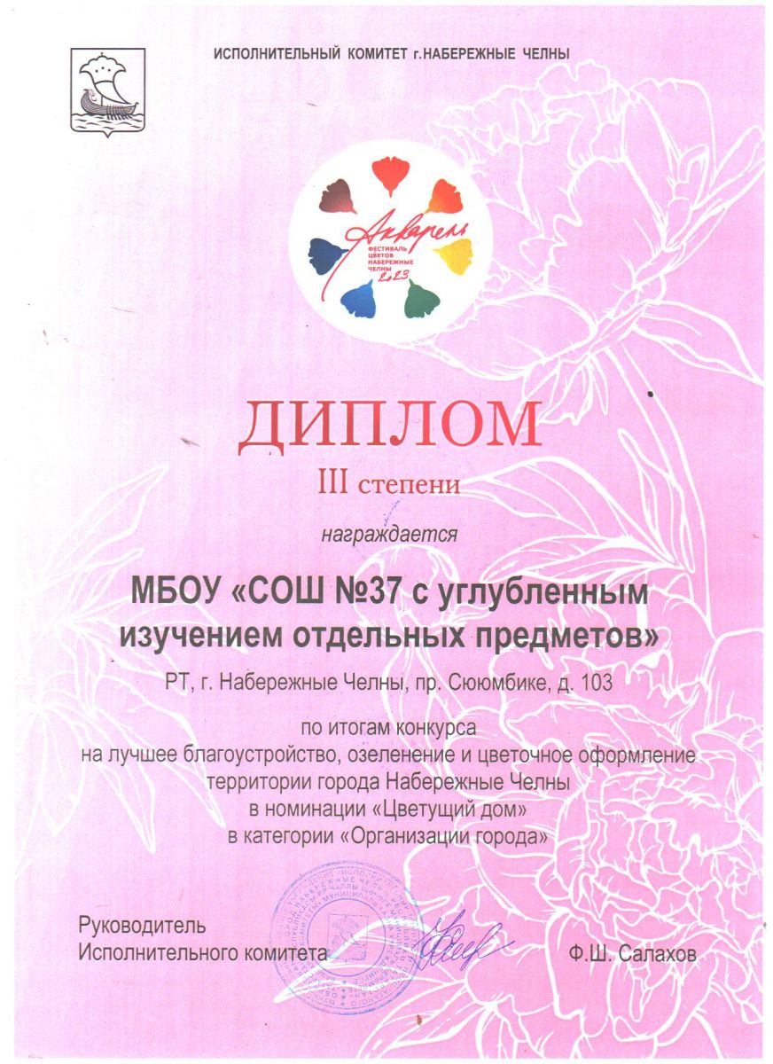 Диплом III за лучшее благоустройство, озеленение и цветочное офлрмление