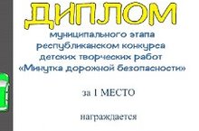 В муниципальном этапе республиканского конкурса детских творческих работ «Минутка дорожной безопасности» в номинации «Ребенок – главный пассажир» ученик 1а класса Насретдинов Тимур Ильдарович награждается Дипломом 1 степени.Классный руководитель Галиева Фируза Ирековна. -