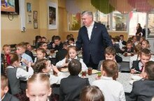 Безнең мәктәбебезгә шәһәр мэры Мәһдиев Наил Гамбәр улы килде. Ул ашханәнәдә башлангыч сыйныф укучылары белән көндезге аш ашады.