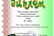 Шәһәр программасының “Уйнап, җырлап күңел ачыйк” этабында III урын яулаган “Зирәкләр” командасын котлыйбыз, җитәкчеләре татар теле һәм әдәбияты укытучылары: Мөхәмәтшина Г.М., Хәлиуллина Г.В. Алга таба да уңышлар телибез!