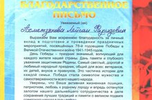 Выражается искренняя благодарность Ахметзяновой Лейсан Фаридовне за личный вклад в подготовке и проведении праздничных мероприятий, посвященных 78-й годовщине Победы в Великой Отечественной войне 1941-1945 годов.