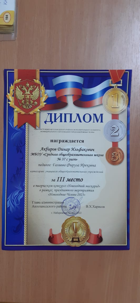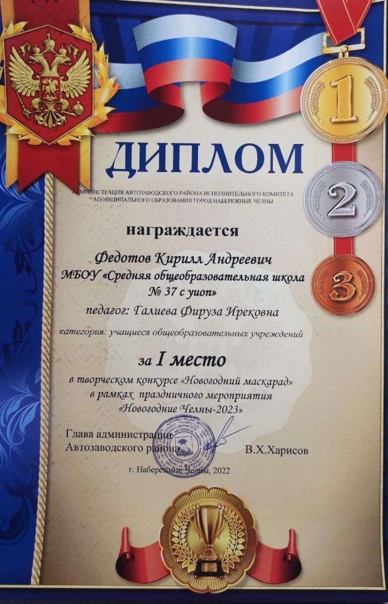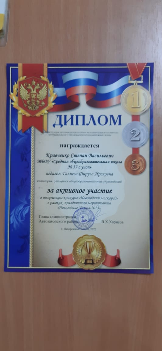Шигапову Азалию, 9а класс, победитель Суслова Эмиля, 4в класс, призёр Хафизова Ильсафа, 8в класс, призёр