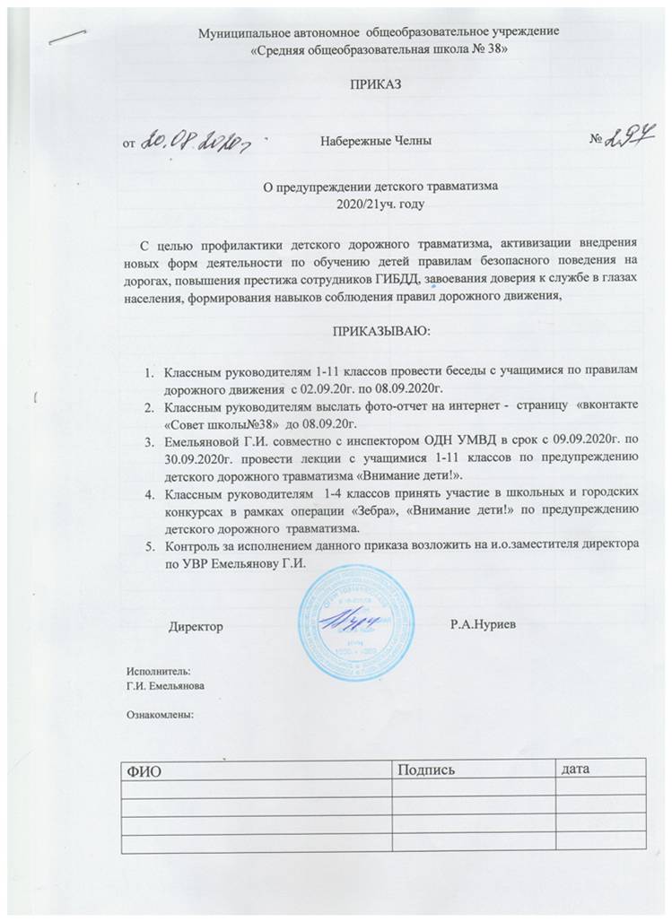 Приказ О предупреждении детского травматизма в 2020-2021 уч.году