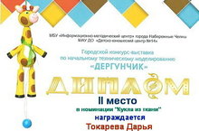 В январе 2019 года прошел городской конкурс-выставка по начальному техническому моделированию “Дергунчик” на базе МАУДО “ДЮЦ №14”. В конкурсе-выставке приняли участие ученицы Мишустина Ангелина (8Б класс) и Токарева Дарья (8В класс). В номинации «кукла из ткани» Мишустина Ангелина заняла 3 место, а Токарева Дарья – 2 место (учителя технологии Халиуллина Е.В. и Вавилов В.Г.).