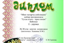 25 нче январьдә безнең мәктәп укучылары “Мин татарча сөйләшәм!”шәһәр программасының 4 нче этабында катнашып, 1 нче урын яуладылар. 4 нче этап “Туган илем-иркә гөлем ”исеме астында узды.Бәйгедә 3б һәм 5а сыйныфы укучылары Шангараева Залинә, Шангараева Азалия, Ахиардинова Амира, Зарипова Радэлия катнашты. Бәйгегә укчыларны татар теле һәм әдәбияты укытучысы Хазиева Халидә Мингараевна әзерләде.Киләсе бәйгеләрдә дә уңышлар теләп калабыз!