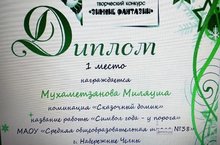 Ученица 6в класса Мухаметзянова Миляуша заняла 1 место в региональном творческом конкурсе “Зимние фантазии”в номинации “Сказочный домик”.
