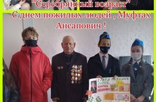 Тимуровцы 8 в класса "АВИАОТРЯД" в рамках акции "Серебряный возраст" поздравили ветерана ВОВ Нуртдинова Муфтаха Ансаповича с Днем Пожилых Людей.