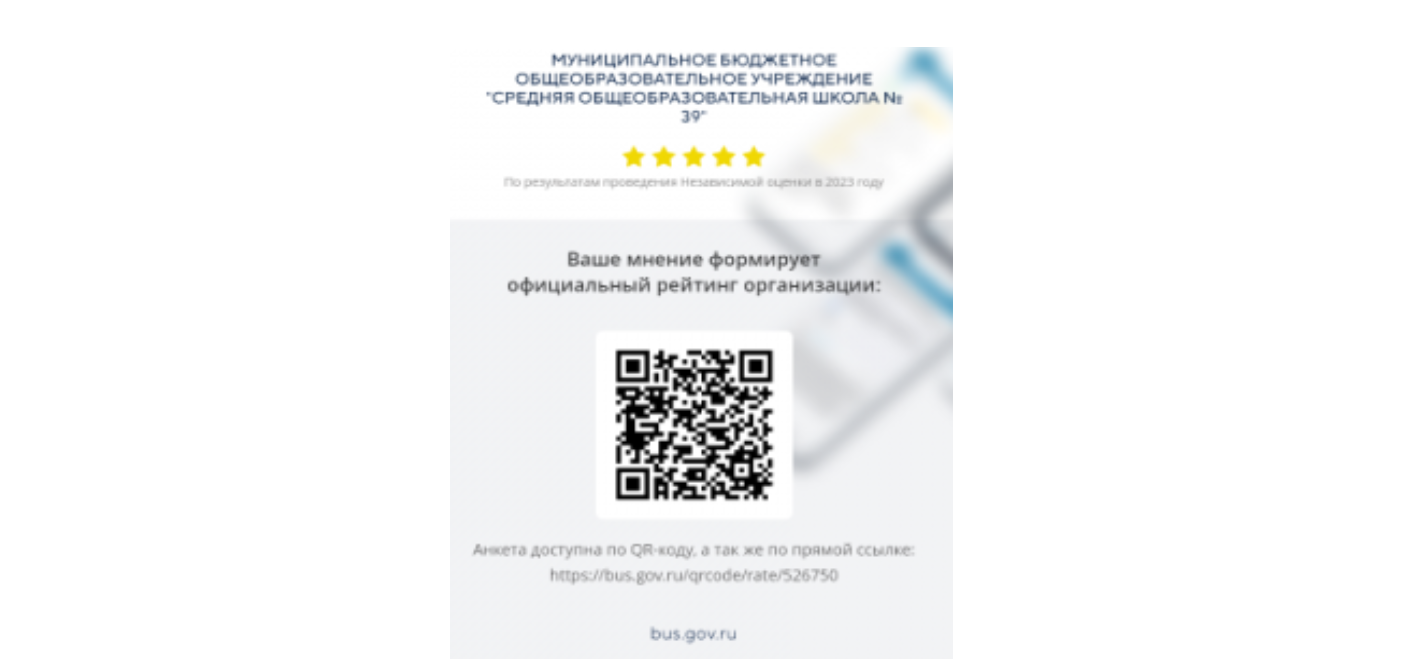В соответствии с письмом заместителя Министра просвещения Российской Федерации Д.Е.Грибова от 22.09.2023 № ДГ-2226/02, в целях повышения охвата населения системой независимой оценки качества условий оказания услуг организациями социальной сферы (далее – независимая оценка, НОК) размещаем QR-код для прохождения независимой оценки в соответствии с разработанными Минтрудом России общими требованиями и методическими рекомендациями.