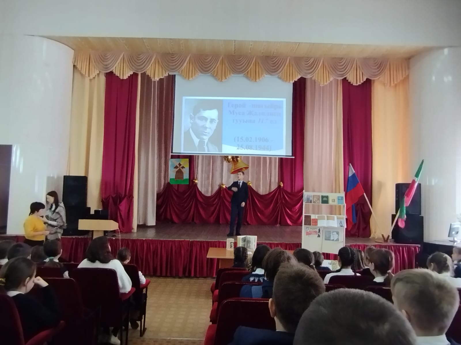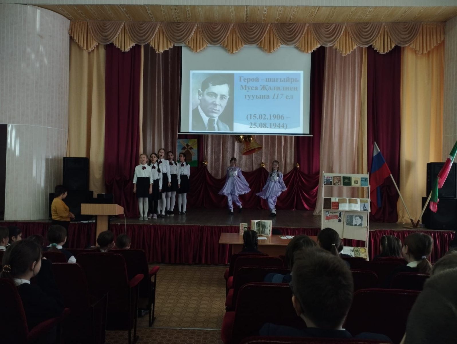 Бүген мәктәбебездә Советлар Союзы Герое, патриот шагыйрь Муса Җәлилнең туган көненә багышланган шигырь бәйрәме узды. Бәйрәмне 5в сыйныф укучылары “Салют сиңа, Муса Җәлил!”җыры белән башлап җибәрделәр. Аннан соң шагыйрьнең балалар һәм өлкәннәр өчен язылган шигырьләре татар һәм рус телләрендә яңгырады. Шулай ук укучыларыбызның берничә видеоязмасы да тәкъдим ителде.