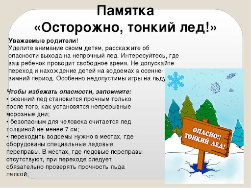 ПАМЯТКА ДЛЯ РОДИТЕЛЕЙ И ДЕТЕЙ "ОСТОРОЖНО, ТОНКИЙ ЛЕД!" 09.11.2021