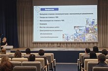 В презентации к выступлению директором колледжа были отражены материально-технические ресурсы учебного заведения, достижения учащихся в региональных и мировых чемпионатах WS, перспективы развития колледжа в рамках реализации Федеральной программы.