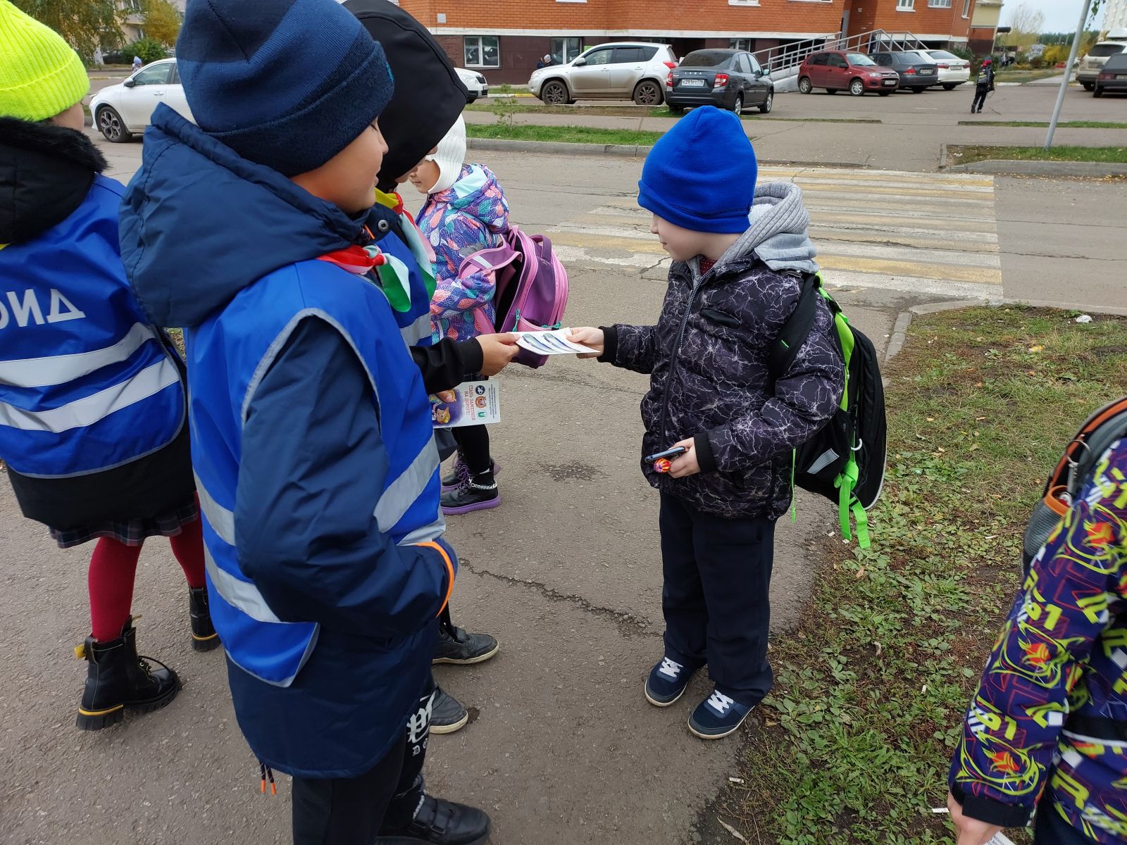 10 ноября школьный отряд ЮИД "Дорожный патруль" (4А класс, руководитель Тухфатуллина Г.Ш.) вышел на рейд на пешеходный переход на остановке "65-ый комплекс" с целью наблюдения за поведением пешеходов на проезжей части, раздачей памяток по ПДД для родителей, памяток о детском удерживающем кресле и с целью напоминания пешеходом о необходимости соблюдения ПДД. В ходе рейда юными инспекторами были выявлены 3 нарушителя: 1 велосипедист, не спешившийся на пешеходном переходе, и 2 пешехода, переходившие дорогу, смотря в телефон. С некоторыми из нарушителей ЮИДовцам удалось провести профилактическую беседу, указать на их нарушения.