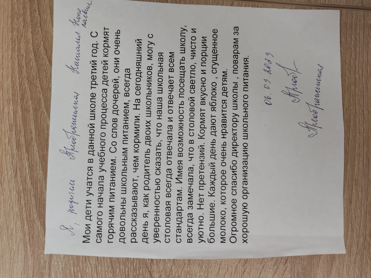 Форма обратной связи о качестве питания: