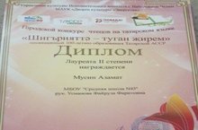 дип аталган шигырь сөйләүчеләр бәйгесендә катнашты. Мәртәбәле жюри тарафыннан яхшы бәя бирелде, 2нче дәрәҗә диплом белән бүләкләнде.