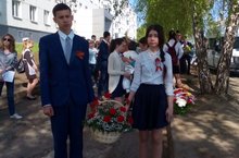 9 мая Тимофеев Данил и Аделина возложили цветы у памятника Родина-мать.