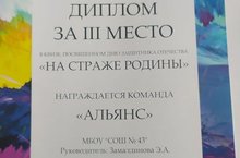 25 февраля сборная команда 7 классов приняла участие в квизе, посвящённый Дню защитника Отечества. По итогам игры команда нашей школы заняла 3 место. Поздравляем их с победой!