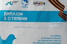 22 марта наградили волонтерский отряд имени С.П.Титова, состоящий из учеников 10 А класса (классный руководитель Садртдинова Л.Х.), за победу во Всероссийском историческом квесте "За оборону Сталинграда",