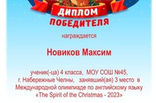 Международная олимпиада по английскому языку "The spirit of Christmas"/Инглиз теле буенча "The spirit of Christmas" халыкара олимпиадасы 20.01.2023
