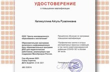 Обучение по программе повышения квалификации «Профилактика гриппа и острых респираторных вирусных инфекций, в том числе новой коронавирусной инфекции (COVID-19)» и «Обеспечение санитарно-эпидемиологических требований к образовательным организациям согласно СП 2.4.3648-20»/«Гриппны һәм кискен респиратор вируслы инфекцияләрне, шул исәптән яңа коронавирус инфекциясен (COVID-19) профилактикалау» һәм «СП 2.4.3648-20 нигезендә белем бирү оешмаларына санитария-эпидемиология таләпләрен тәэмин итү» дигән квалификация күтәрү программасы буенча уку 24.04.2021