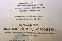 30 октября в ГДТДиМ №1 состоялась защита социальных проектов «Добрый Татарстан». Тимуровский отряд «Прометей» представил проект «С ангелом в сердце».