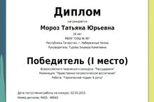 Победитель (1 место) Всероссийского конкурса «Рассударики» 17.03.2015