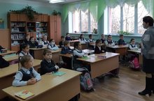 С 26 апреля по 30 апреля 2021 года для учащихся 1-9 классов проходят тематические классные часы "Я прививок не боюсь". На фото классный час во 2 Б классе.